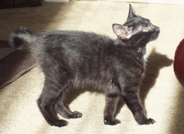 But then our daughter noticed there was a little black kitten in the back of the pen. A little black kitten with a naturally stubby tail.