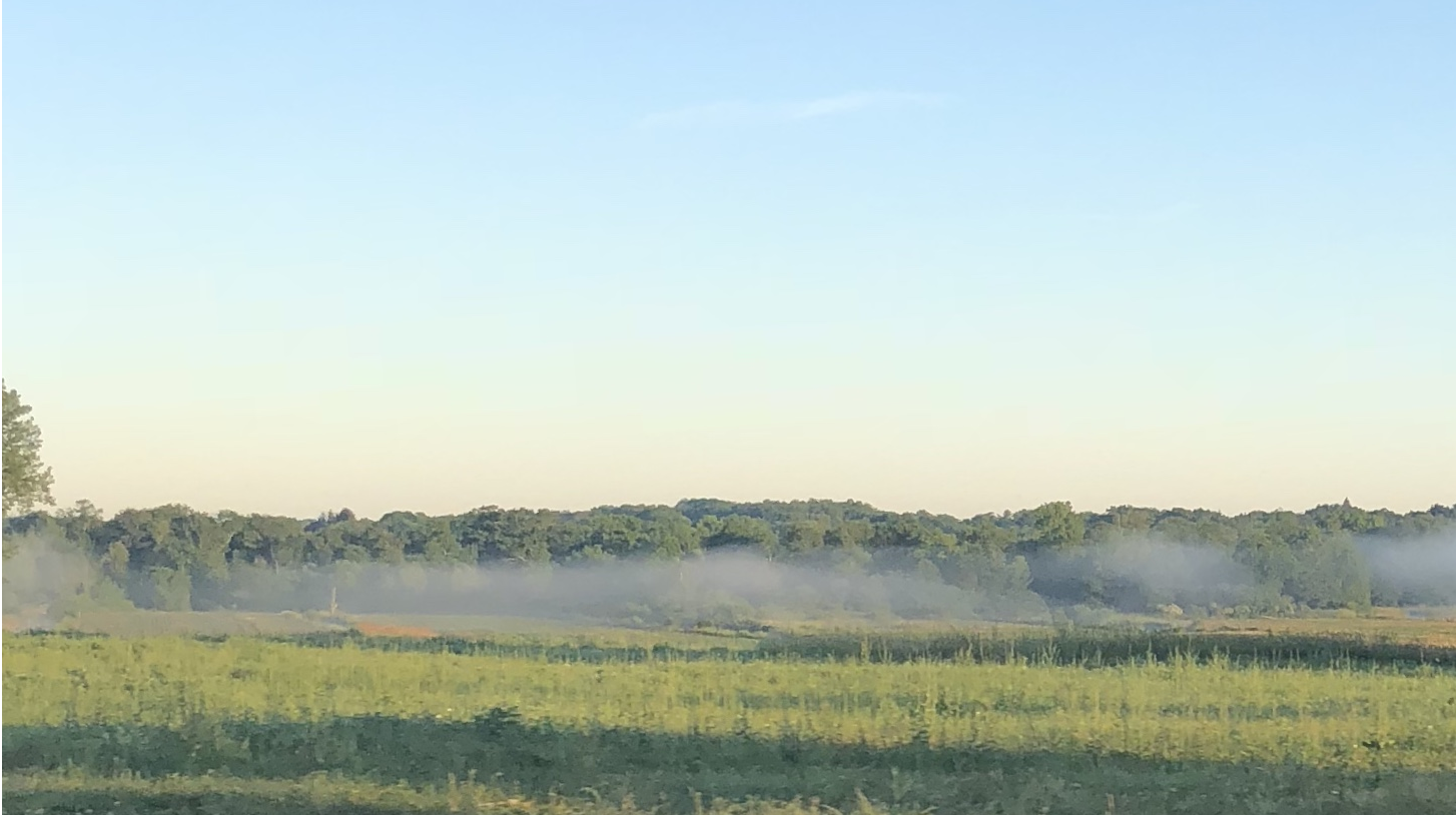 Hey everyone, quick post from the computer at the station. My friend @janton asked if I was on duty today, and as it happens I am! I arrived at 6 AM this morning. Here is a picture I snapped on the drive in of some fog over a farm.