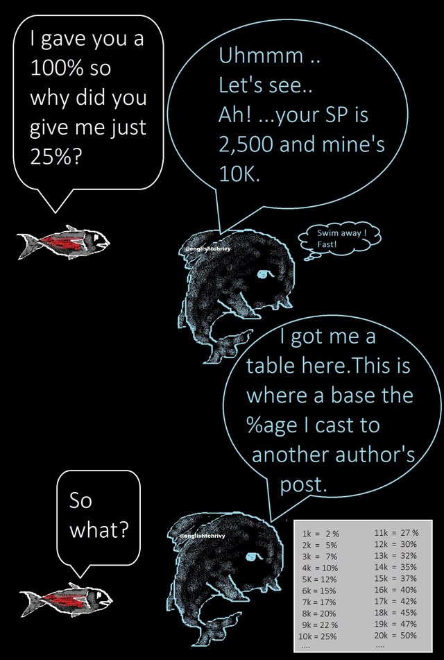 You are absolutely right. Why do minnows compare themselves with whales in VP and SP? If any whale finds something interesting, it will surely upvote for it.