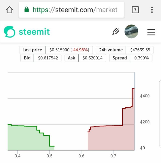 Ah, I think what you’re seeing there is because the internal market is priced in SBD and for some reason their value has doubled and isn’t holding at the pegged $1. So it’s .51 SBD which is currently about $1.02 USD. I’m sure it’ll normalize, maybe a pump and dump on SBD...