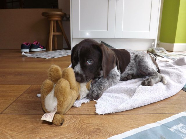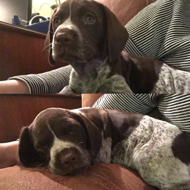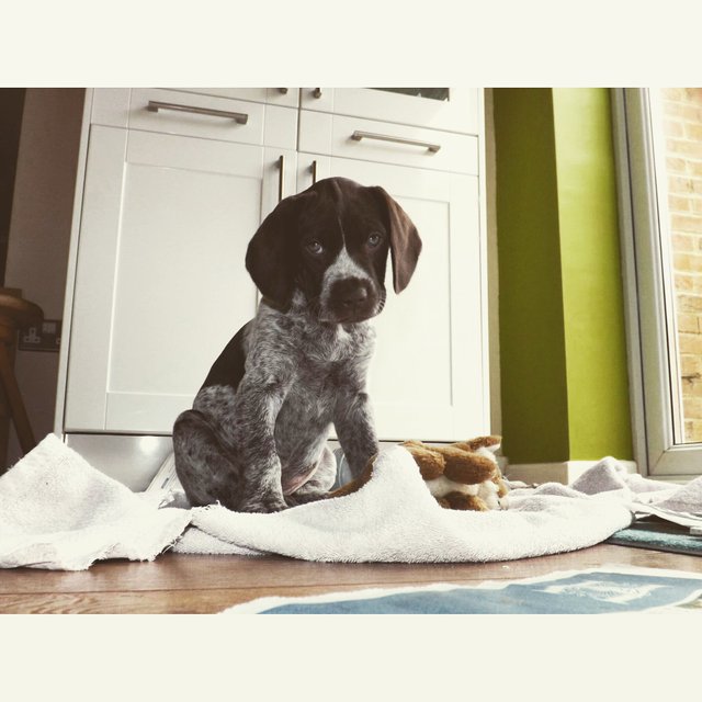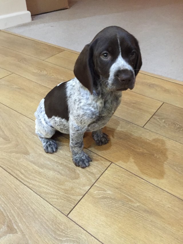 My puppy is a springer spaniel cross pointer, and is the most crazy but lovable pup around.