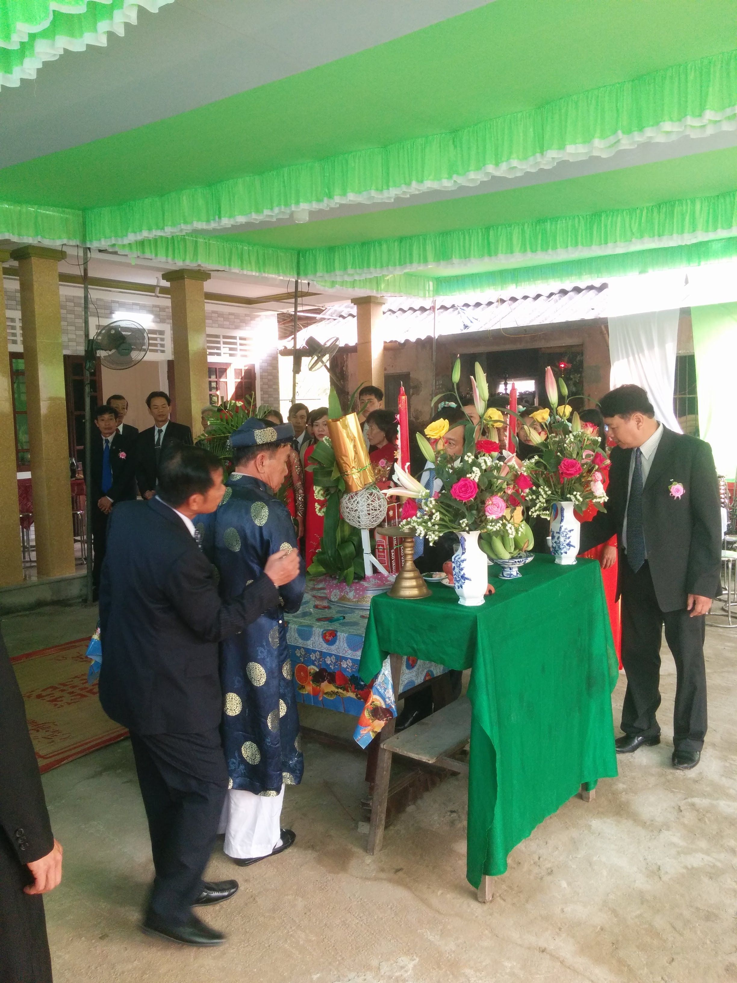 This ceremony requires the whole groom's party to go to the bride's house, along with the equivalent to a priest, with offerings and gifts to the bride's family made out of Betel leaf and areca nut. The officiator heads the ceremony and begins the process of receiving the bride and bringing her to the groom's house. Candles are lit, representing the joining of the bride and groom, the father's both drank an offering shot of vodka poured by the other one, followed by the burning of incense at an altar asking the permission from ancestor's for her hand in marriage.