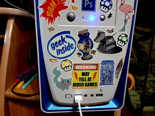 A few days ago I showed how I decorated my guitar and laptop with stickers, and today I decided to go on with my personal computer. I have a white trunk, so stickers look great on it, they also have white outlines.