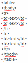 "tr" stands for the table rows, "td" stands for the columns.. you can add more if you want, but make sure that tr is inside the table and tbody code, and td is inside a tr.