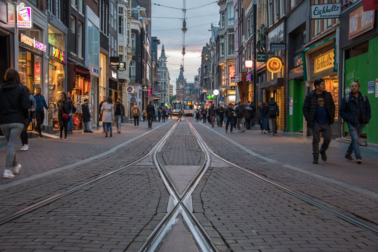 Also in this photo there is 1 clear vantage point, the tracks in the foreground grab the viewers attention and lead the viewer into the street. This effect gets enlarged by the overhanging lights and the shops on the sides.