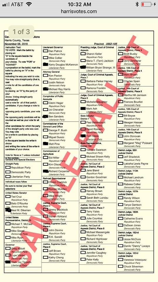 Elections Coming Up In Texas. Look At My Ballot And Votes.
