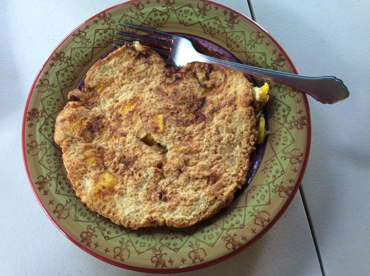 Mix it all up, melt some butter in the pan, and cook until firm. You don’t even need any syrup because the fruit is sweet.