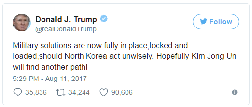It was not clear precisely what type of “military solutions” Trump was concerning or what exactly would represent unwise action by the North Korean leader.