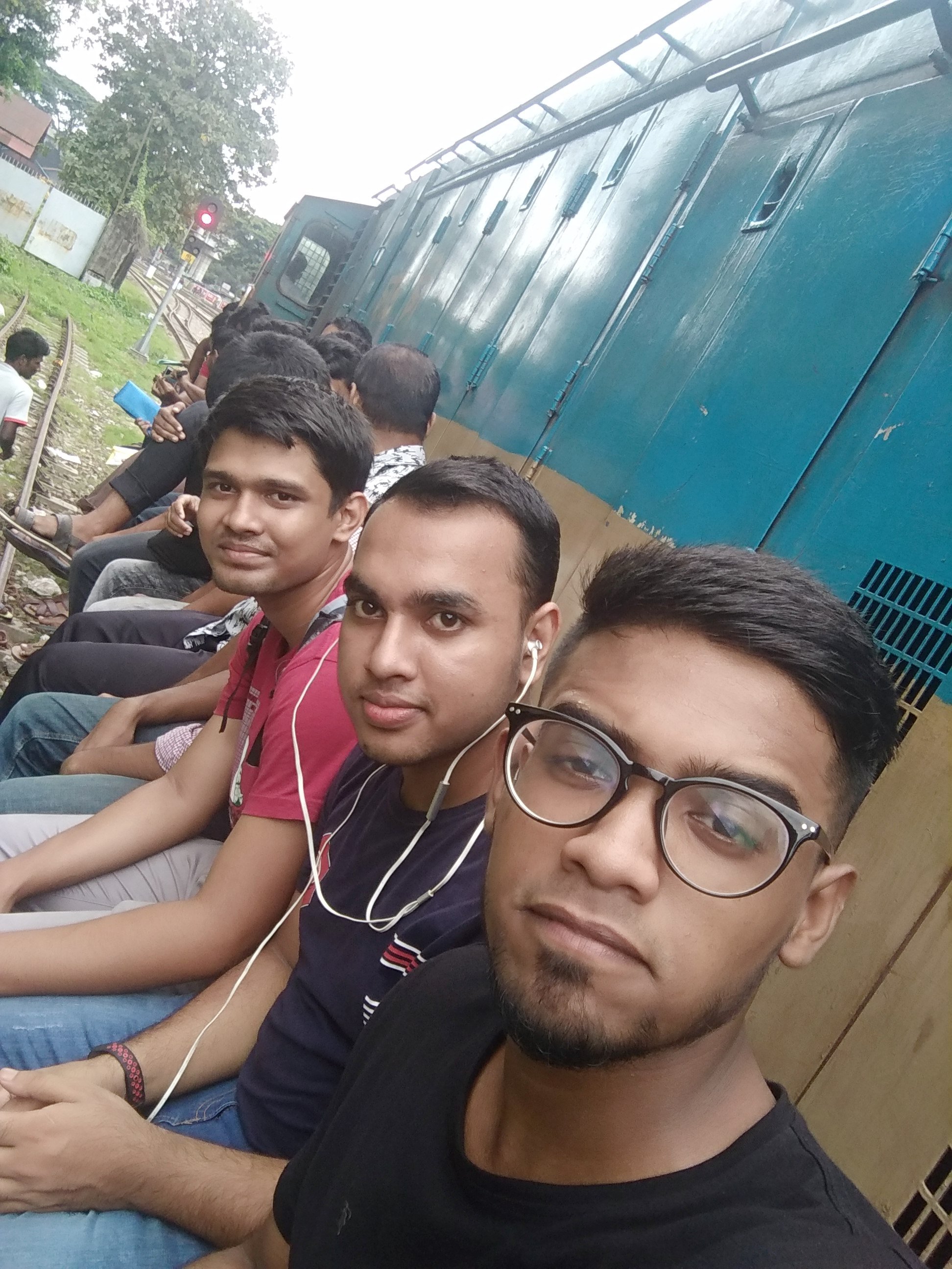 আমরা তিন বন্ধু। যে সেলফি তুলেছে তার নাম কাওসার। মধ্যে আমি আর শেষে শাকিল। খুব মজা হয়ে ছিলো আবার ভয় ও লাগতে ছিলো। কারন ধরে বসার মত কিছু ছিলো না আর বিশ্ববিদ্যালয়ে যাওয়ার লাইন টাও ছিলো অনেক আগের আকা বাকা। বার বার নরে জাচ্ছিলাম। যাক অনেক কস্টে চট্টগ্রাম বিশ্ববিদ্যালয়ের ষ্টেশান এ পৌছাই। পৌছে চোখ বড় হয়ে যায়। এতো মানুষ বাবারে বাবা।
