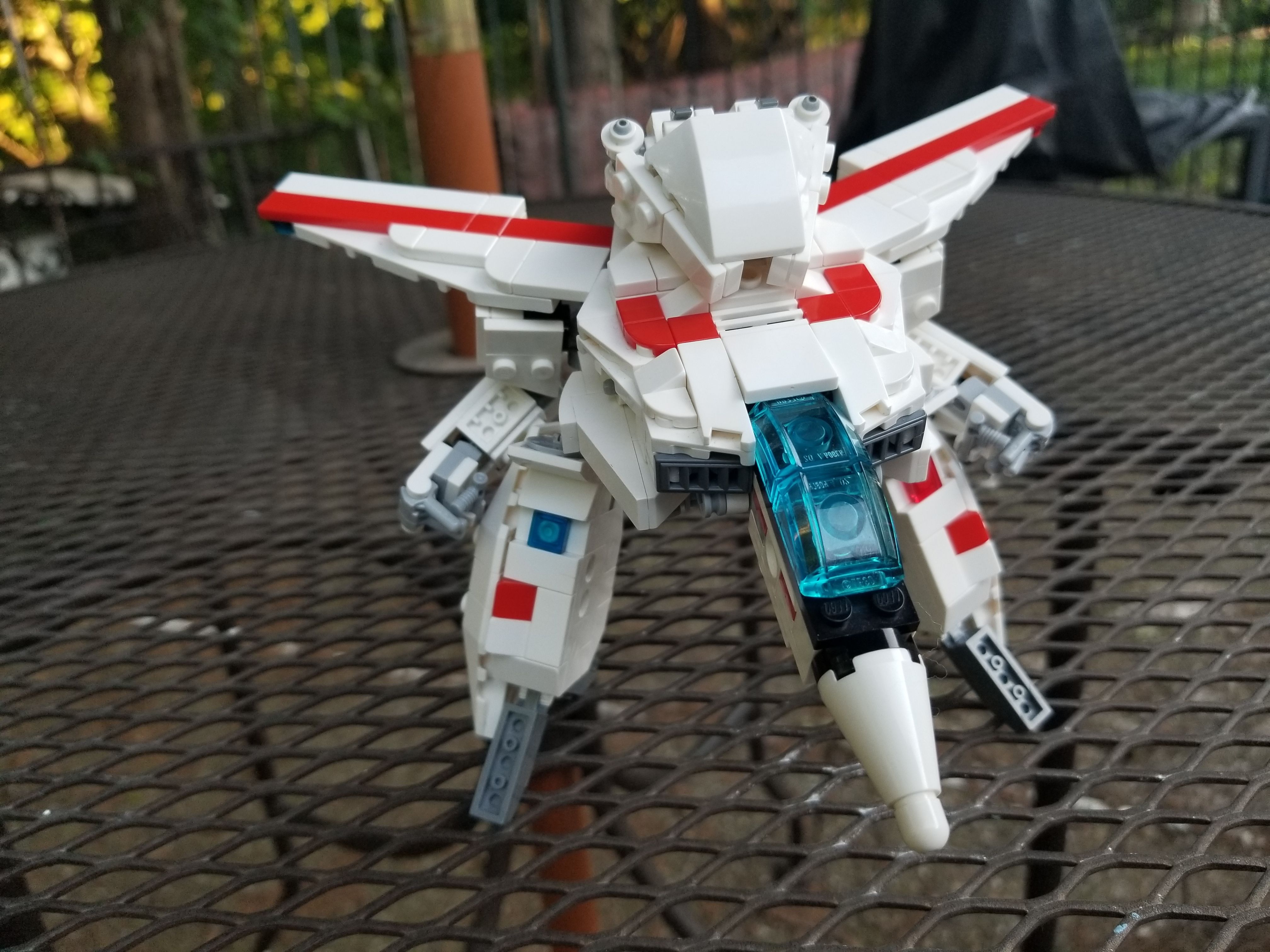I wanted to share with you my take on a Lego VF-1J Valkyrie from Super Dimension Fortress Macross or as its affectionately known in the states, Robotech. I've been working on this on and off for over a year and I finally got a chance to sit down and post it. I've always had a soft spot for transforming mecha and the Valkyrie is one of my absolute favorites. Not to mention Lego kicks ass too.