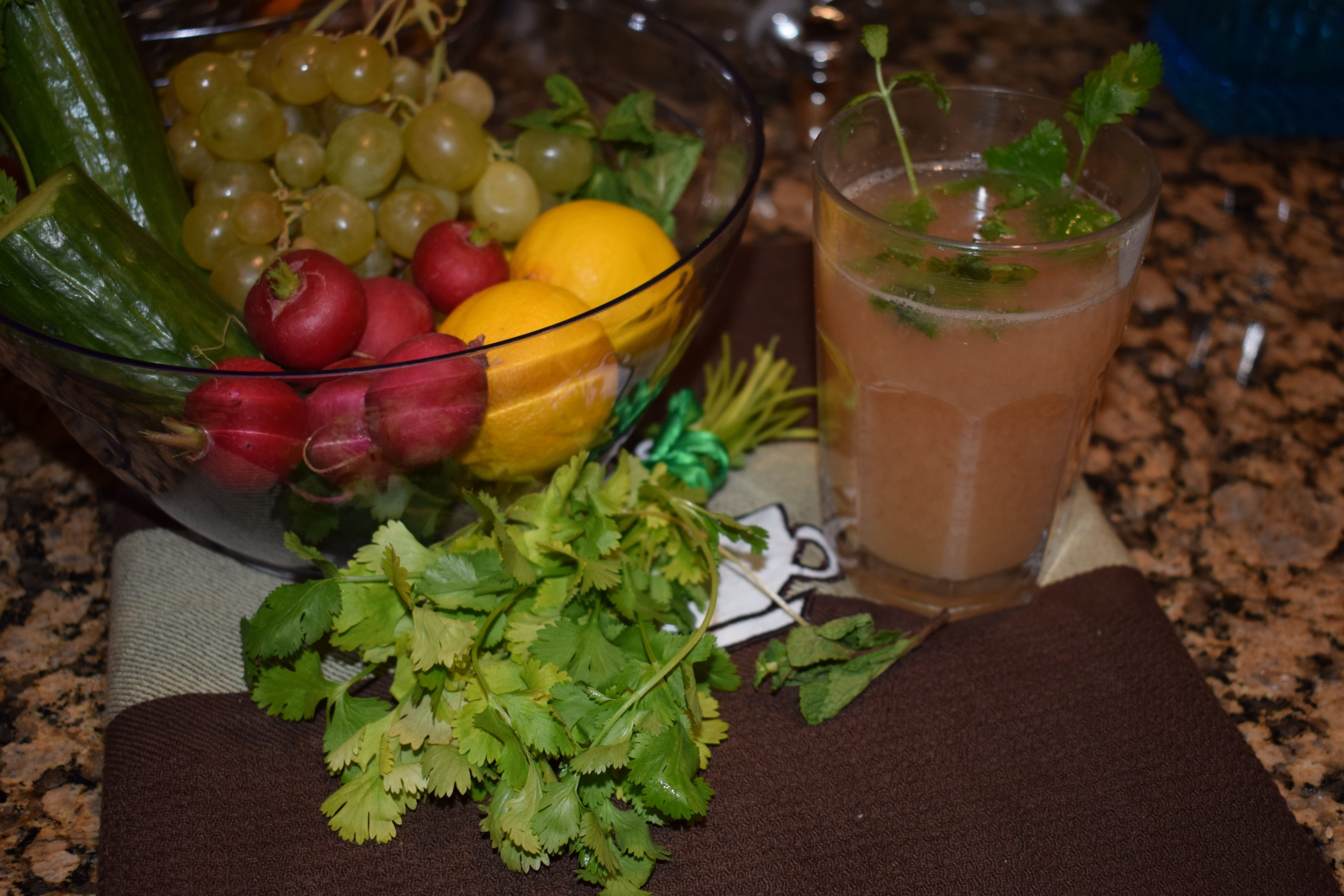 Grapes, cucumbers, radish with a splash of lemon, mint and coriander