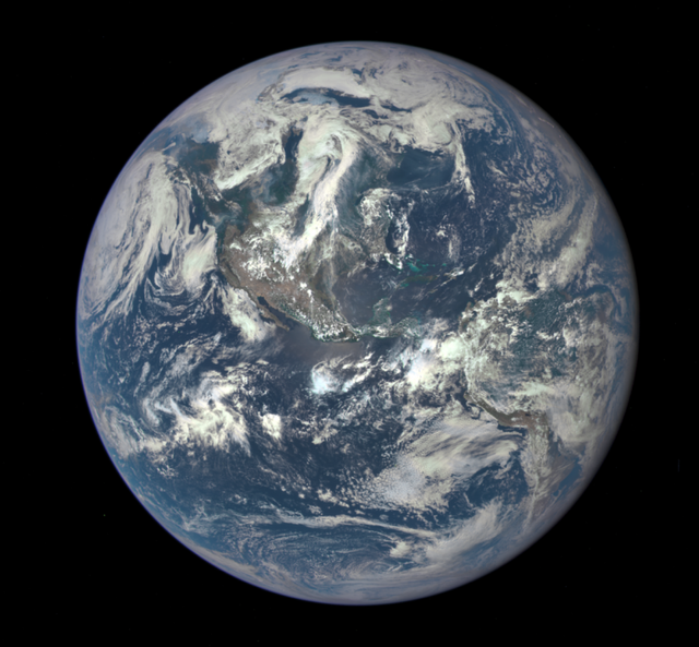 This color image of Earth was taken by NASA’s Earth Polychromatic Imaging Camera (EPIC), a four megapixel CCD camera and telescope.