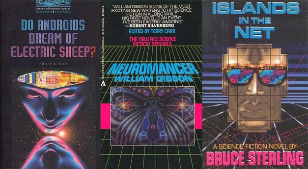 IMPORTANT POINT ! I never claimed to have invented cyberpunk fiction ! That honor belongs primarily to William Gibson, whose 1984 novel, Neuromancer, was the real defining work of "The Movement" (at the time, Mike Swanwick argued that the movement writers should properly be termed neuromantics, since so much of what they were doing was clearly imitation Neuromancer).