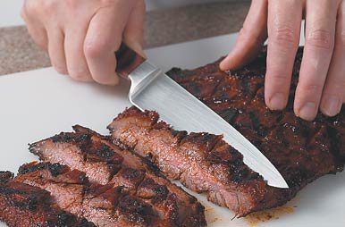 After the resting period, slice the meat against the grain. This gives the maximum flavor and combats chewy steaks.