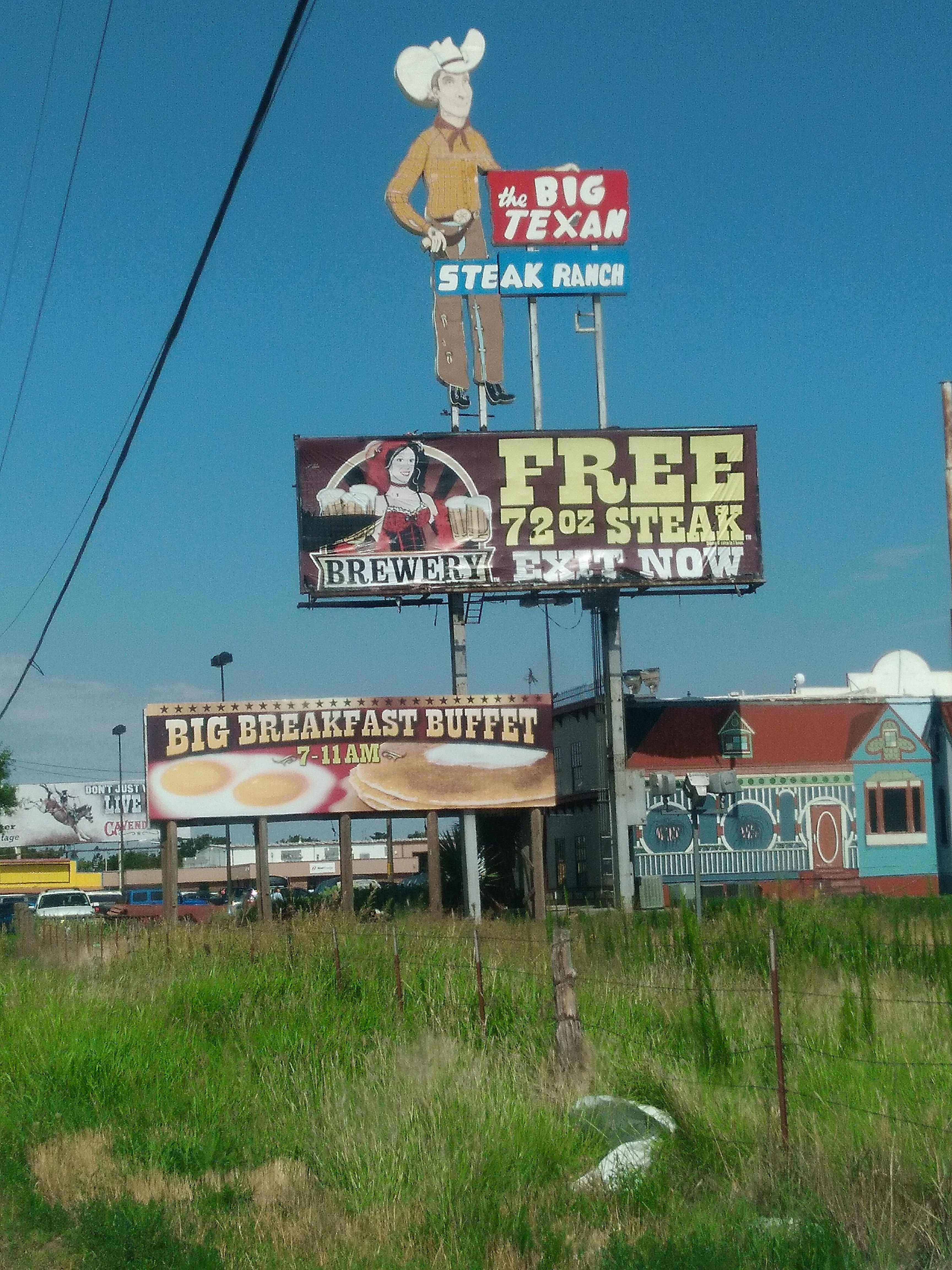 Then on way out of town I swung by the Big Texas. One of the most famous landmarks in Texas. The property is famous for it's old west town look....and for its massive steaks. They have a 72 oz. steak and if you eat it all (with trimmings) it is FREE! If you don't though you will be washing dishes for a month to pay for it.