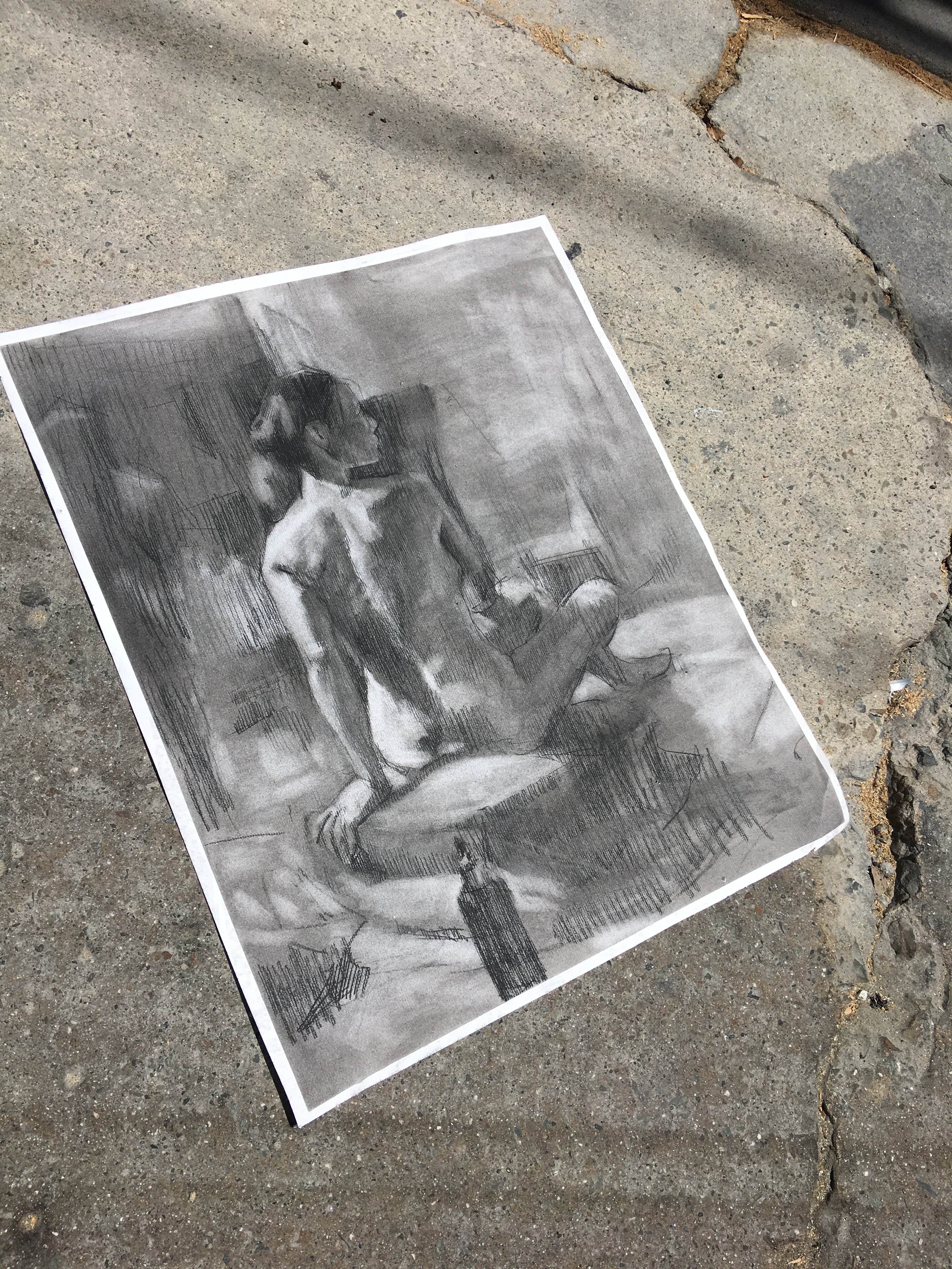 There is a possibility he was going to be showing his drawing to the model? Or maybe he just wanted to preserve the moment, I say "he" but it could be a "she" that was creating the artwork so perfectly scattered as trash near the dumpster in the alley. Quality curation is in the eye of the curator I suppose.
