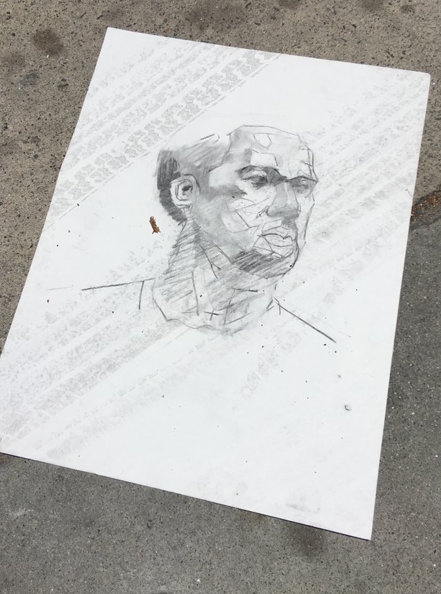 I don't think the person that drove over this drawing thought anything of the work involved in creating this piece, I wondered who the artist was and why they threw their drawings in the trash to begin with. Did they not enjoy drawing?