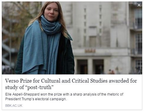 Let me make the answer by means of a short presentation of this year's award, which is awarded every year by the world-famous publishing house Verso to the best students at London University Birkbeck.