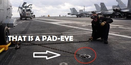 "Go out to each one of the pad-eyes and scoop out all the dirt and crud that's built up in them. Fill up the cup, then wipe out each one with the rag and take the cup back here to the hangar and dump it in that trash can there," pointing at the large dumpster at the back of the hanger. He looked at me with a measure of graveness. "Also, I'd do my best to make those pad-eyes shine if I were you."