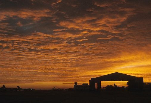 He drove me down to the flight line, a massive concrete slab that took up the lion's share of the base's total square mileage, with two runways running through the middle, and rows of hangars on the north side. On the south side, well away from the rest of the hangars and the refueling station, was the "CALA," or Combat Aircraft Reloading Area, where the pilots and crew practiced with live missiles and ammunition.