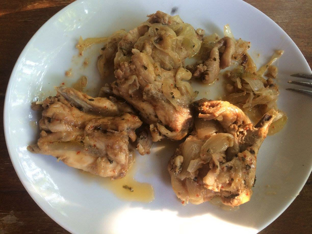 Chickens, flaked pepper, thyme, black pepper and salt are added.