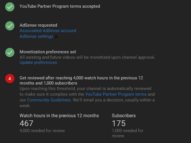 Finally, when a monetization was accepted I managed to make a few peeve bucks off it and now again the monetization is removed.