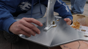 Next came the roll-bar. Following the instructions, we angled the roll-bar towards the back of the anchor fluke. We applied more lubricant to the bolt threads and slid the bolts through the holes into position. Again, we turned the bolts into the nuts to prevent damaging the galvanized coating.