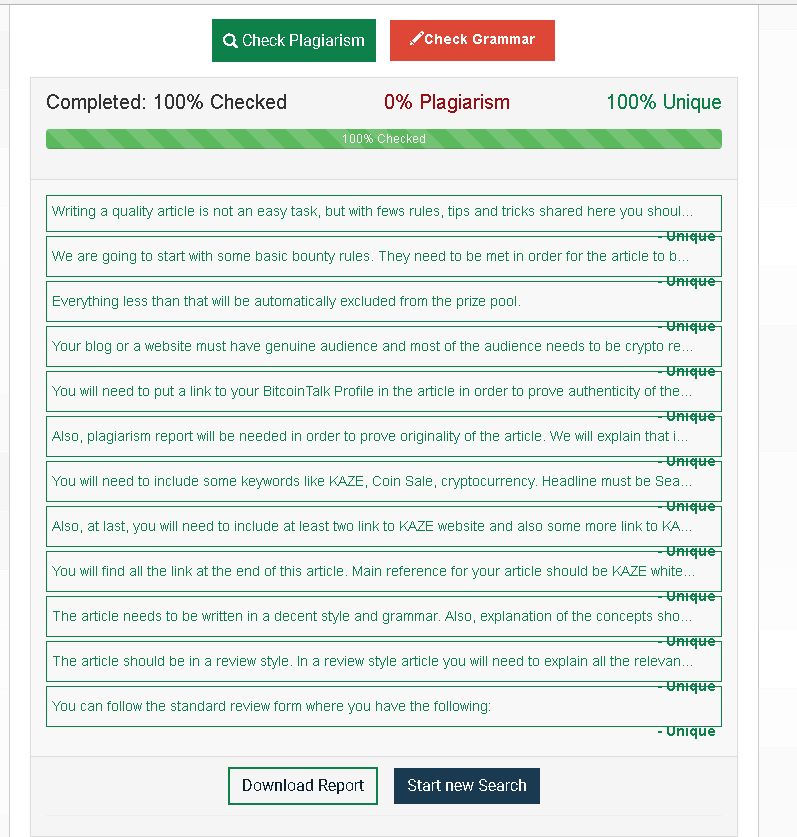 If your article is between 70 and 100% unique - still pretty good, but depending on the position on the scale, you may receive a bit less stakes.