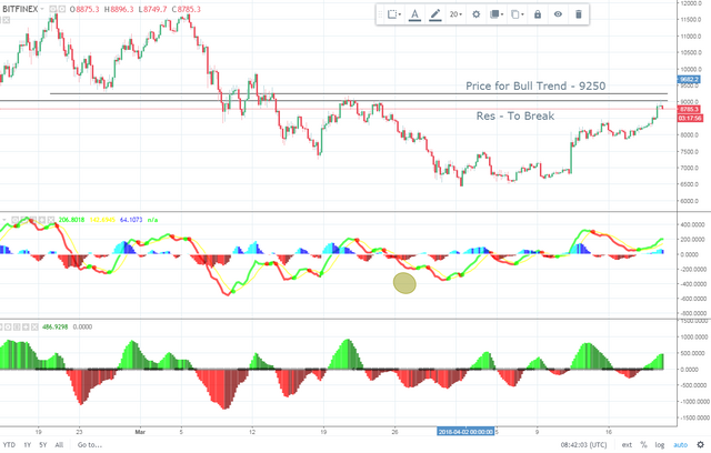 If broke 9100 & 9250 with a high volume can lead us to Bull Market trend. From the current market position, I want BTC to sustain above 8600 and breakout 9250 with high volume in 2 -3 days. Its good for us if it takes time to change the trend. It can result into so many Alt-Coin movements.