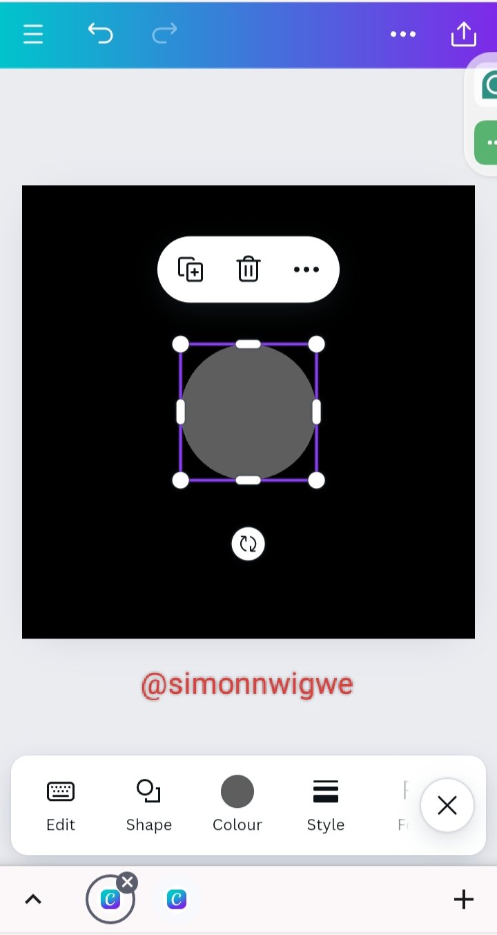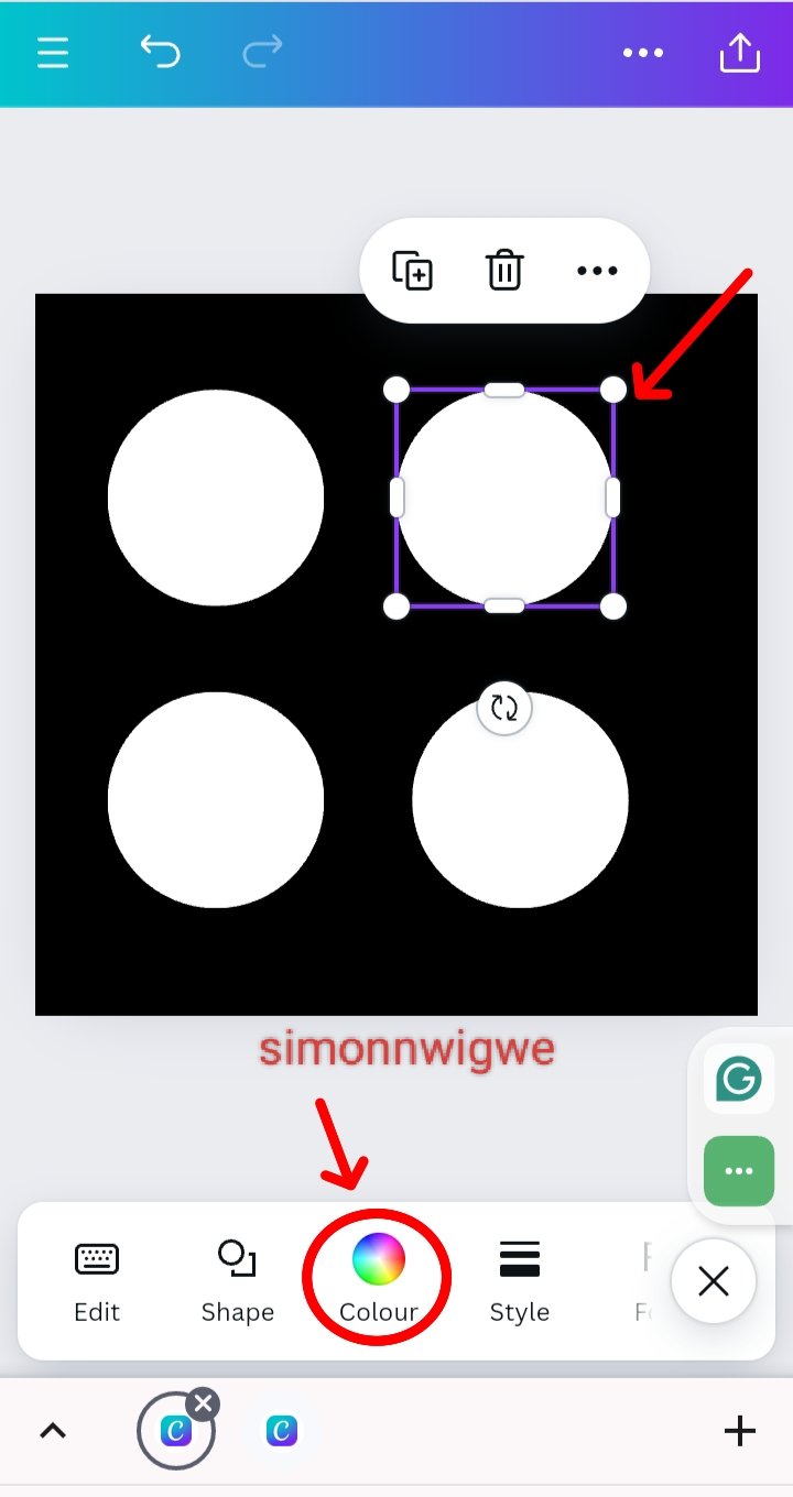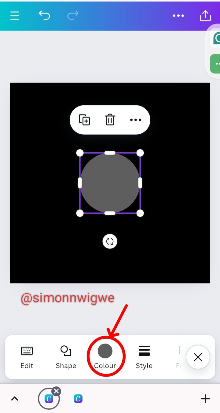 Step 4: Seeing the circle shape in our background we may want to change the color by clicking on it and then going to the color panel and selecting a color of our choice in this case white. You can hold the tips to the sharp to enlarge or reduce.