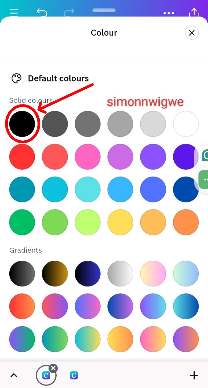 Step 2: Change the color by going to the color icon present on the toolbar. Drag the highlighted part upward to show the range of colors. Select the black color.
