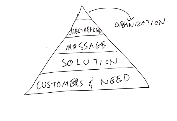 An extremely common mistake, especially when "craftsmen" who are really good at producing products but have no experience running a business create their own business for the first time, is to infamous "solution in search of a problem." Put another way, this essentially means starting one level too high in the pyramid: creating a product and then trying to find someone who might need it.