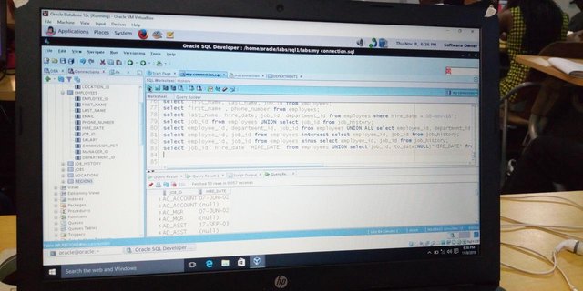 The second day of training is going on well , the training is getting more complex, we've started running multiple queries at a time, we have 5 hours lecture and 2 hours to practice what we already learn for the day and on Fridays are for lab practice only, we practice all what we have been taught through the week and there will be a group quiz , for which each group has to attend and submitting to the instructor after solving.