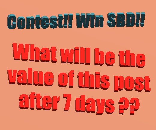 CONTEST WIN SDB!!What will be the value of this post after 7 days??fabinhocrypto (53)in #busy • 8 years ago 50% of this post for the winner!! THE RULES!! Guess the value of this post after 7 days and write it as a comment (format 4.51$) Upvote this post Just one participation!! in case of equality, the first to give the right value will have won GOOD LUCK ALL!! #contest #challenge #money #steem