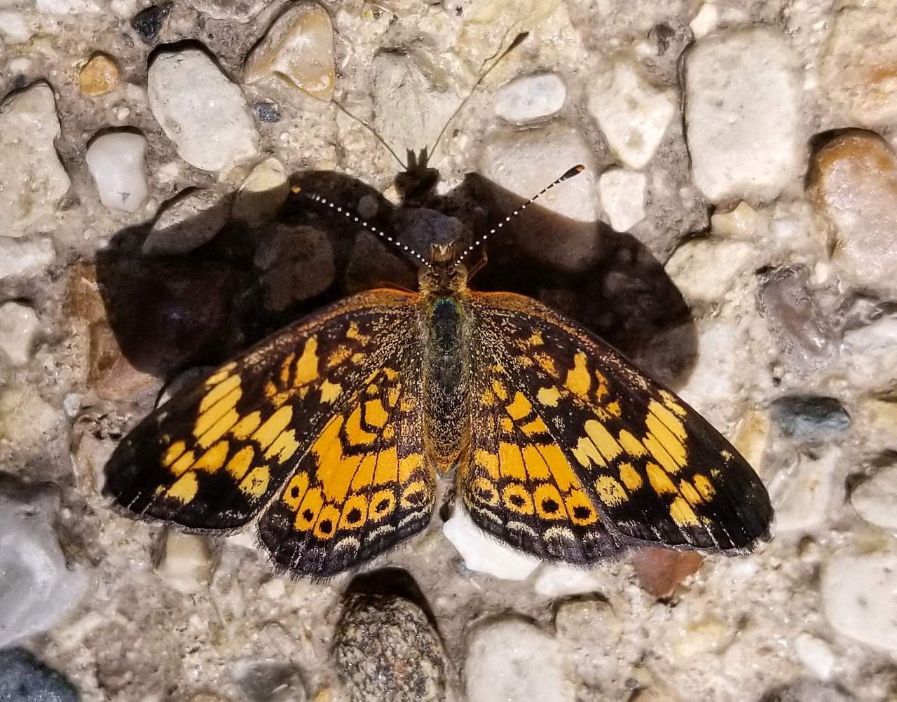 It can be so hard to identify these brown and orange butterflies, and they drive me crazy. I would say that it is either a Silvery Checkerspot or a Pearl Crescent. I love the shadows! I don't find too many butterflies mud puddling so I am glad you got that one of the red admiral. I also love milkweed as much as the monarchs do. Great photos! Happy #butterflyday to you too @sketch.and.jam. : )