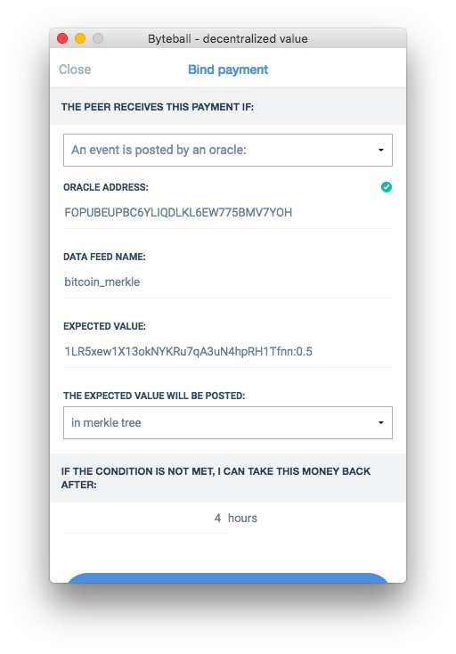 Once the events are there, you can set the terms of the contract and bind your payment to the other party’s performance: