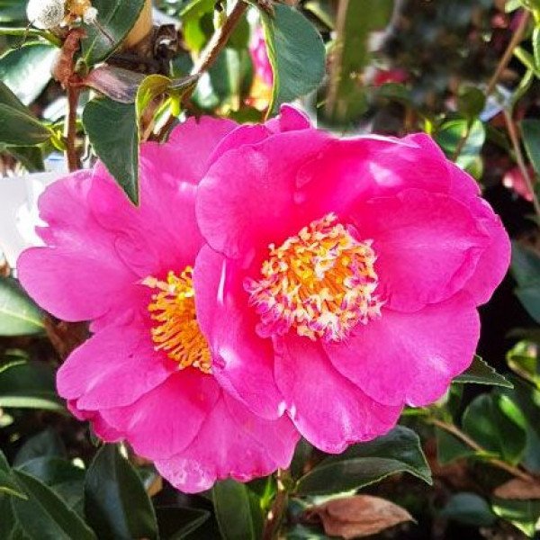 Camellia sasanqua is an evergreen Shrub developing to 3 m (9ft) by 1.5 m (5ft) at a moderate rate.