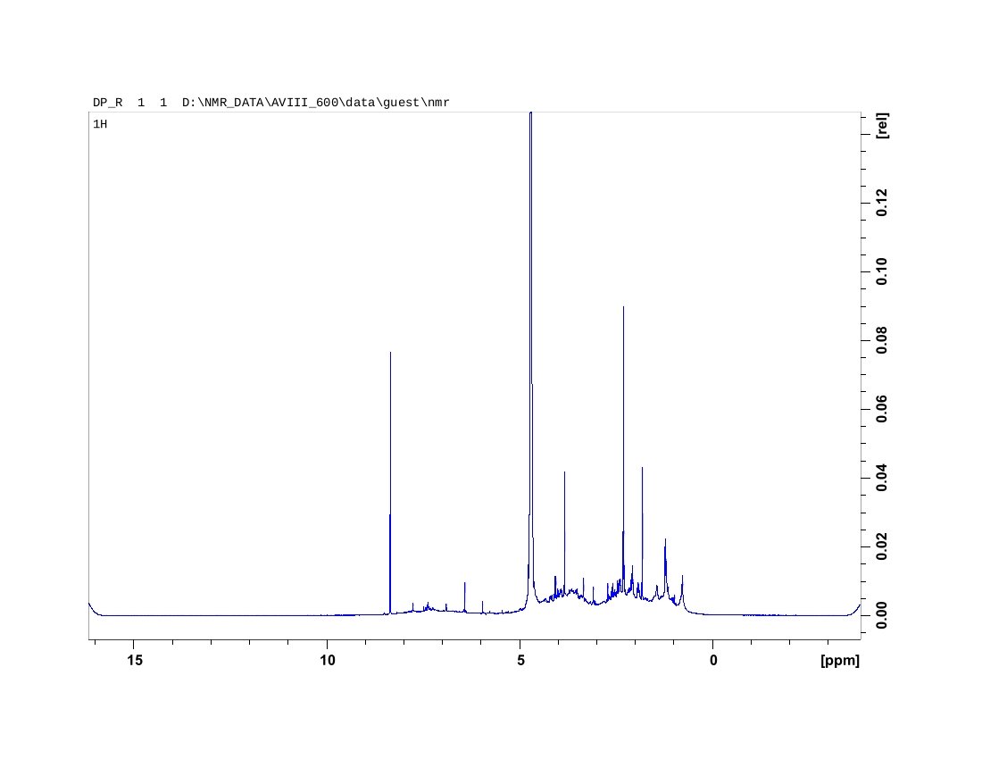 The following are Proton Nuclear Magnetic Resonance (1H-NMR) Spectroscopy Analysis plottings from the University of Ottawa facilities. Sample analysis was performed by Glenn A. Facey, Ph.D. (Gérant du Laboratoire RMN | NMR Facility Manager)