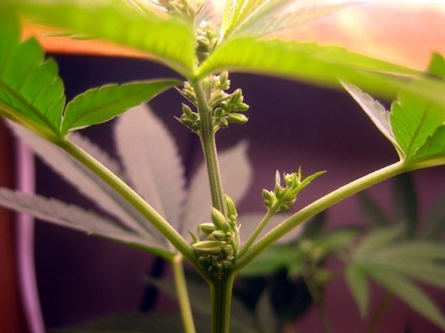 At day 54 here, I was able to sex 2 of the plants - 1 was female and 1 was male! The photo shows plant B, a female:
