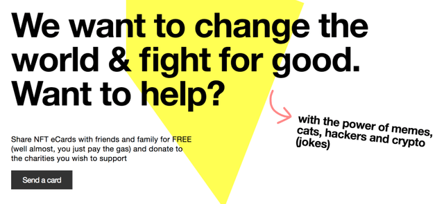 Sending cards to friends using crypto. Interesting. I think it's awesome that all funds generated are donated to activists and charities. And freedom is a great cause. That's very cool.