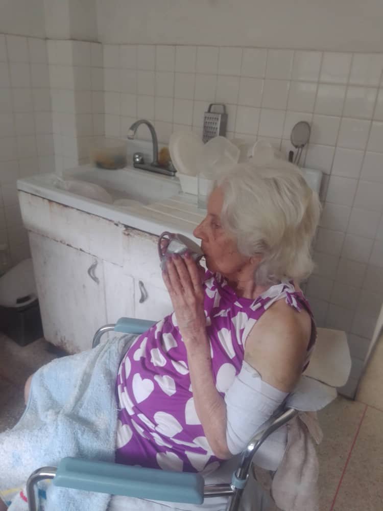 Hoy salió de la cama, después de dos meses. Su última caída le causó fractura en los dos hombros. El médico dijo que sus huesos parecían una galleta de soda. Yo pienso que está equivocado, y que mamá tiene huesos de titanio, pues a sus 92 años se aferra a la vida con garras de águila. A veces llora y otras veces se ve triste.