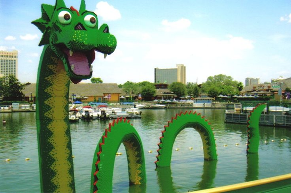 In Downtown Disney, Marketplace, Lake Bueno Vista, Florida you can find the lego ness monster made of 170,000 Lego bricks and stands over 30 feet tall.