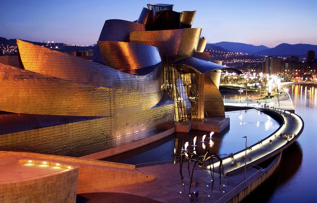The Guggenheim Museum Bilbao is a museum of contemporary art designed by the Canadian architect Frank O. Gehry and located in the town of Bilbao, Spain. It is one of the museums belonging to the Solomon R. Guggenheim Foundation. It was inaugurated on October 18, 1997 by King Juan Carlos I of Spain.