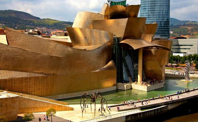 The most striking feature of the museum is the innovative building in which it is located, consisting of curvilinear and twisted shapes, covered with limestone, glass curtains and titanium plates. It has a total area of 24,000 m², of which 10,540 m² are reserved for exhibitions, distributed in 19 galleries. It is located on the banks of the estuary of Bilbao, in an area called Abandoibarra, next to the bridge of La Salve, which is surrounded by a hollow tower.
