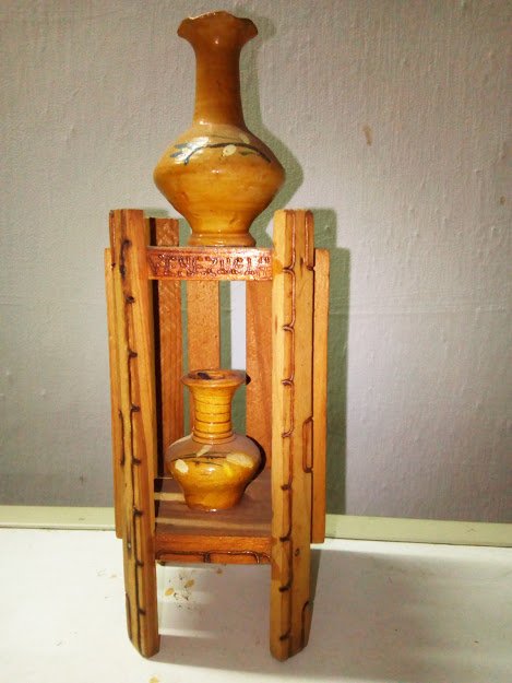 Desde el álbum familiar, esta miniatura, producto de un paseo por carretera, no recuerdo exactamente en que lugar lo compramos. Está elaborado en madera y cerámica y cumple su misión, pero en un mínimo, claro está. Aunque la actual es alimentar recuerdos en una repisa del gabinete del comedor