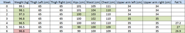 Wow great results look at the good losses and gains you are getting in all the right areas and in the first 3 weeks that is excellent keep up the good work :D!!!