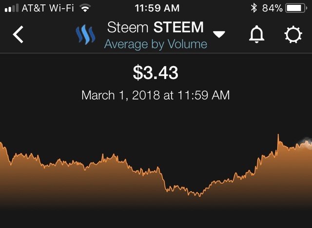The price of "STEEM" was $3.43 at 12:00 P.M. PST.