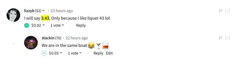 I just want to put in my guess from now for the next contest, my price prediction is $4.20, because reasons! 🤪 💨