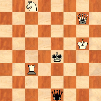 An original 'KQRN vs kq' mate in 3 chess construct composed autonomously by the prototype computer program, Chesthetica, using the relatively new computational creativity approach called the 'DSNS'. There is no known limit to the quantity or type of compositions that can be generated.