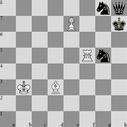 This is an original 'KRBP vs kqnn' three-move chess construct composed autonomously by a computer using the DSNS computational creativity approach which doesn't use any kind of traditional AI. Chesthetica has the creative ability to compose positions that may otherwise take centuries to arise in an actual game, if ever. Depending on the type and complexity of the problem desired, a single instance of Chesthetica running on a desktop computer can probably generate anywhere between one and ten problems per hour. Any chess position with this many pieces could not possibly have been obtained from known endgame databases. Chesthetica is therefore the real McCoy.